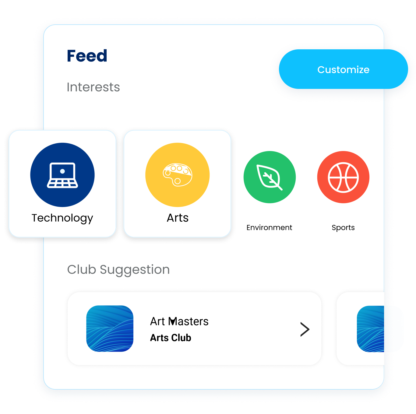 Produce a curated feed of events for each student based on their interests.
